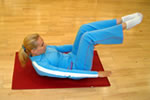 Stai pe spate, oarecum ghemuita, cu umerii ridicati, picioarele indoite in aer si mainile sprijinite deasupra genunchilor. Intinde simultan bratele si picioarele oblic, expirand. |
