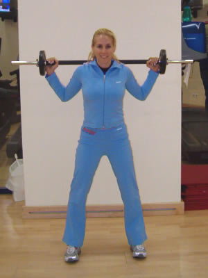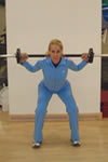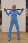 Cu haltera sprijinita bine pe umeri, te apleci incet in fata. Atentie, trebuie sa tii umerii in jos, intr-o pozitie normala. |