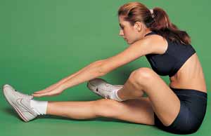 DACA VREI, POTI! Din culcat pe spate, cu glezna stanga deja "aranjata" pe genunchiul drept, te ridici, te indoi in fata cat mai mult, cu abdomenul contractat, si incerci sa-ti atingi varful piciorului sau macar siretul adidasului. Mentii pozitia 3 - 5 secunde, revii lent la sol culcata pe spate, inspiri si reiei miscarea. De 10 ori initial, pentru fiecare parte. |