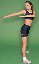 3 - coapse si gambe Stai intr-un picior, cu genunchiul putin indoit, si cu bratele intinse lateral (formeaza linie dreapta cu umerii). Piciorul drept, care este perfect intins, va fi dus, pe rand, in fata, lateral si in spate. Executa aceeasi miscare si cu celalalt picior. Repeta tot exercitiul de opt ori. |