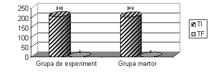 Grupa martor si cea de experiment au fost alcatuite astfel incat sa fie aproximativ egale din punct de vedere numeric si valoric, diferenta de punctaj fiind doar de 0,28% in favoarea grupei martor. Ierarhizarea lor a fost realizata prin cumulul obtinut in urma punctelor primite la examenul antropometric si la probe.
