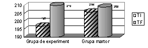 Grupa de experiment prezinta o crestere procentuala superioara a mediei aritmetice, fata de grupa martor, care insa la testarea finala a fost mai omogena decat cea de experiment.