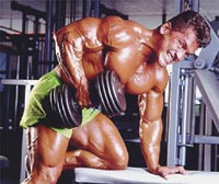 - Ramat cu ambele gantere pentru spate - 3 serii x 12 rep. (20 sec. pauză);