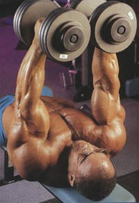 - Împins cu gantere pentru piept - 3 serii x 6 rep. (75 sec. pauză);
