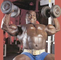 - Împins cu gantere pentru umeri - 3 serii x 20 rep. (20 sec. pauză).