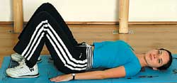 Stai intinsa pe spate, cu picioarele indoite.