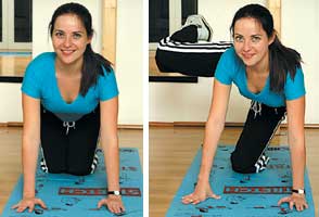 Aseaza-te in genunchi, sprijinita pe antebrate. Tine spatele perfect drept si
