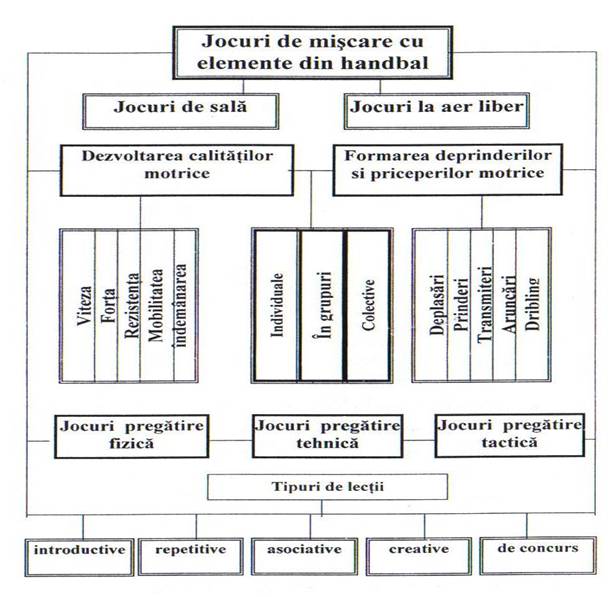 Figura 4. Clasificarea jocurilor de miscare cu elemente tehnice din handbal