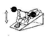 5. Impins cu gantere ,din culcat pe o banca inclinata.