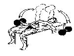 1.Fluturari cu gantere din culcat pe o banca orizontala.