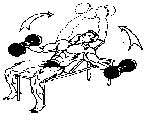 3.Fluturari cu gantere din culcat pe o banca declinata.