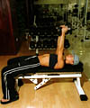 Impins, din culcat, cu ganterele. Anda nu lucreaza prea mult muschii pectorali. De obicei, antrenorul sau o motiveaza pentru 4 serii a cate 10-12 repetari. |