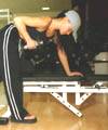 Ramat din aplecat cu gantera, alternativ. 3x12 repetari. Gantera cu care exerseaza nu este pe puterile oricui. Ai putea sa alegi una mai usoara, pentru inceput. |