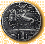 Nike īnaripata īncoroneaza un calatet victorios pe aceasta tetradrahma de argint din Syracuza, sec. 5 ī.d.Hr. Nike īnaripata zboara cu coroana peste o trasura victorioasa, al carei echipaj era dotat cu scuturi, armuri si coifuri. Dekadrahma din argint din Syracuza, mai devreme de sec. 4 ī.d.Hr. Sculpturile atletilor prezente īn scop comerciale? Sculptorii erau pusi sa faca statui ale atletilor victoriosi pentru a fi ridicate īn Sanctuar sau īn orasul natal al atletului. Conform lui Pliniu, cele mai multe statui au fost ridicate īn Sanctuarul lui Zeus din Olympia, ca imagini idealistice ale atletilor. Dupa cāte se stie, pentru a avea o reprezentare realistica īn Sanctuar un atlet trebuia sa cāstige la 3 olimpiade. Pausanias a descris un mare numar din statuile ridicate īn Sancuarul lui Zeus. Din inscriptiile de pe piatra de baza a unei statui si de la un ghid local, Pausanias ne da informatii detaliate, aproape chiar prea detaliate: "Dikon, fiul lui Kallibrotos, a īnvins īn 5