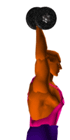 Lucreaza partea frontala a deltoizilor. Desfasurare similara cu ridicarile laterale, ganterele fiind de aceasta data ridicate in fata. Puteti executa acest exercitiu folosind o haltera sau alternand ridicarea bratelor. Dozare: 10-20 ori cu 3-4 serii. |