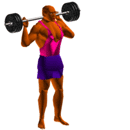 Stand, cu o haltera pe umeri, ca in pozitia pentru genuflexiuni, cu picioarele departate la nivelul umerilor. Mentineti spatele drept pe tot parcursul exercitiului, cu atat mai mult cu cat greutatea folosita este mare. Indoiti usor genunchii si va aplecati in fata din talie. Coborati trunchiul atat cat va permite flexibilitatea corpului astfel ca pieptul sa fie paralel cu solul. Ridicati corpul spre pozitia de plecare, mentinand pozitia spatelui. |