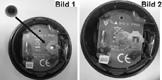 Daca se reduce intensitatea afisajului, daca apar întreruperi scurte sau daca pulsul masurat este incorect, s-ar putea sa fie nevoie sa schimbati bateriile. Pentru acest lucru deschideti capacul compartimentului pentru baterie, prin apasarea piesei metalice, din partea din spate a calculatorului (imag. 1) si introduceti o bateria noua, respectand polaritatea ei si avand grija ca partea pozitiva ("+") sa fie pozitionata in sus. (imag. 2)