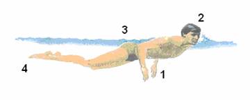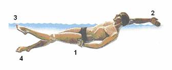 1.   232b16c ;   232b16c ;   232b16c ; bratele sunt intinse inainte, valorificand alunecarea pe apa; 2.   232b16c ;   232b16c ;   232b16c ; capul situat intre brate; 3.   232b16c ;   232b16c ;   232b16c ; picioarele finalizeaza actiunea propulsiva, picioarele sunt extinse si adduse. |