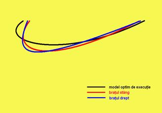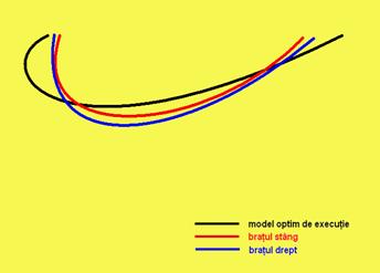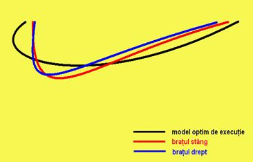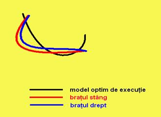 Dupa analiza amanuntita a inregistrarilor efectuate in cadrul experimentului pilot au fost elaborate conturogramele miscarii bratelor in drumul acvatic care reprezinta sub forma grafica, traiectoria miscarii executate. Aceste conturograme sunt prezentate mai jos, insotite de greselile de executie ale fiecarui subiect la fiecare procedeu de inot sportiv