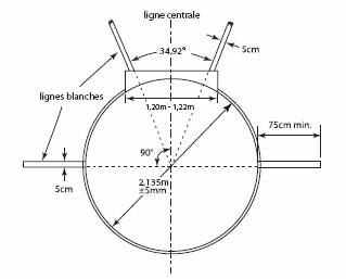 Toate aruncarile, pentru a fi valabile, obiectul trebuie sa cada inauntrul marginilor interne ale benzilor ce delimiteaza sectorul de aruncare cuprins sub un unghi de 34.92s (benzile sau liniile de var vor avea o latime de 5 cm).