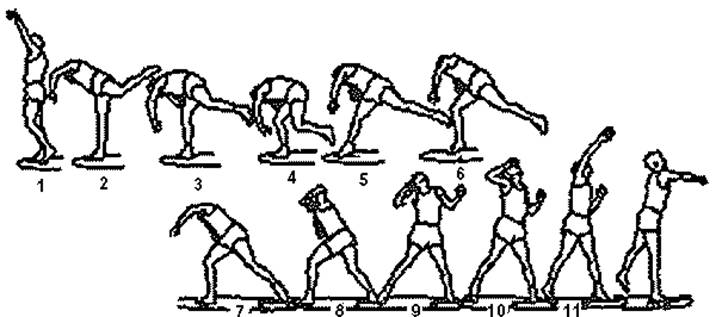 In aceasta faza, aruncatorul urmareste trimiterea picioarelor inainte (depasind trenul superior) si mentinerea greutatii la distanta.