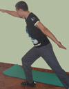 cel stang intins spre spate. Corpul putin inclinat inainte. Duceti bratul stang