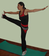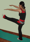Mainile intinse in fata. Ridica piciorul drept , apoi pe cel
