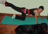 abdominali. Inclinati corpul, picioarele drepte, pana atingeti cu mainile