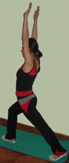 In picioare, cu bratele vertical. Faceti un pas mare